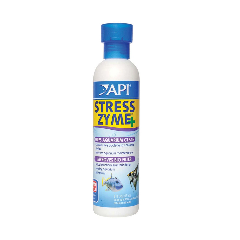 API® Stress Zyme contains over 300 million live bacteria per teaspoonful to consume sludge and reduce aquarium maintenance, keeping your aquarium clean and improving the natural aquarium cycle. Making Stress Zyme part of your tank’s regular upkeep routine assures an active biological filter, a cleaner aquarium, healthier fish, and good water quality. This product may be used in both fresh and saltwater aquariums.