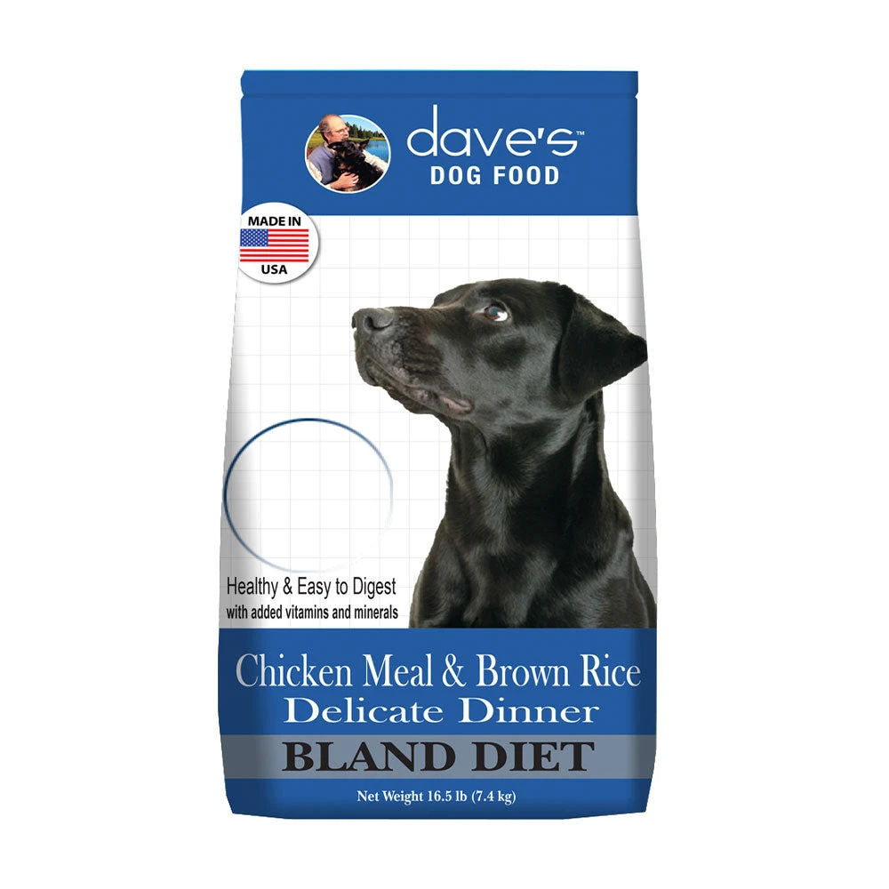 Dave’s Restricted Diet Chicken Meal & Brown Rice Delicate Dinner is designed to help the dog with a ‘delicate’ stomach that can’t just tolerate most foods and do better in a bland diet. It contains an appropriate amount of fiber and high quality, easily-digestible ingredients. Oligofructose is also an ingredient, which actually feeds the good bacteria in the intestines to help maintain a healthy digestive system. Please understand that this formula is not a replacement for any prescription diet, but it is great for many dogs who do better on a bland diet. Healthy, wholesome, and easy to digest, this formula doesn’t contain wheat or wheat gluten, artificial flavors or colors, beef, corn, soy, or dairy products. DAVE’S DELICATE DINNERS DOG FOOD IS FORMULATED TO MEET THE NUTRIONAL LEVELS ESTABLISHED BY THE AAFCO DOG FOOD NUTRIENT PROFILES FOR THE MAINTENANCE OF ADULT DOGS.