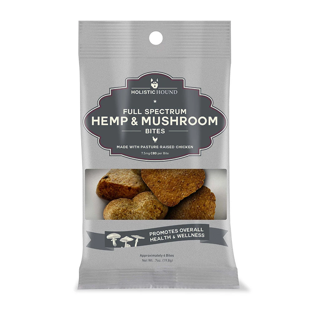 Holistic Hound Chicken PCR Hemp & Mushroom Bite 7.5mg Cat & Dog Treat 0.7 Oz Trial Pack.