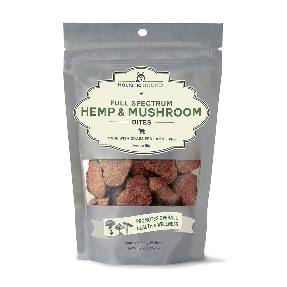 Holistic Hound Lamb PCR Hemp & Mushroom Bite 3mg Cat & Dog Treat 15 Count.