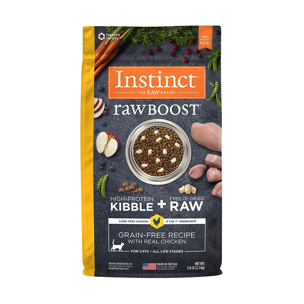 High animal-protein, grain-free, boosted nutrition with bites of freeze-dried raw meat, Instinct Raw Boost Grain-Free Recipe with Real Chicken is a better way to feed kibble. Unlock your cat’s potential to thrive and put more of the pure, real nutrition of raw into every bowl.