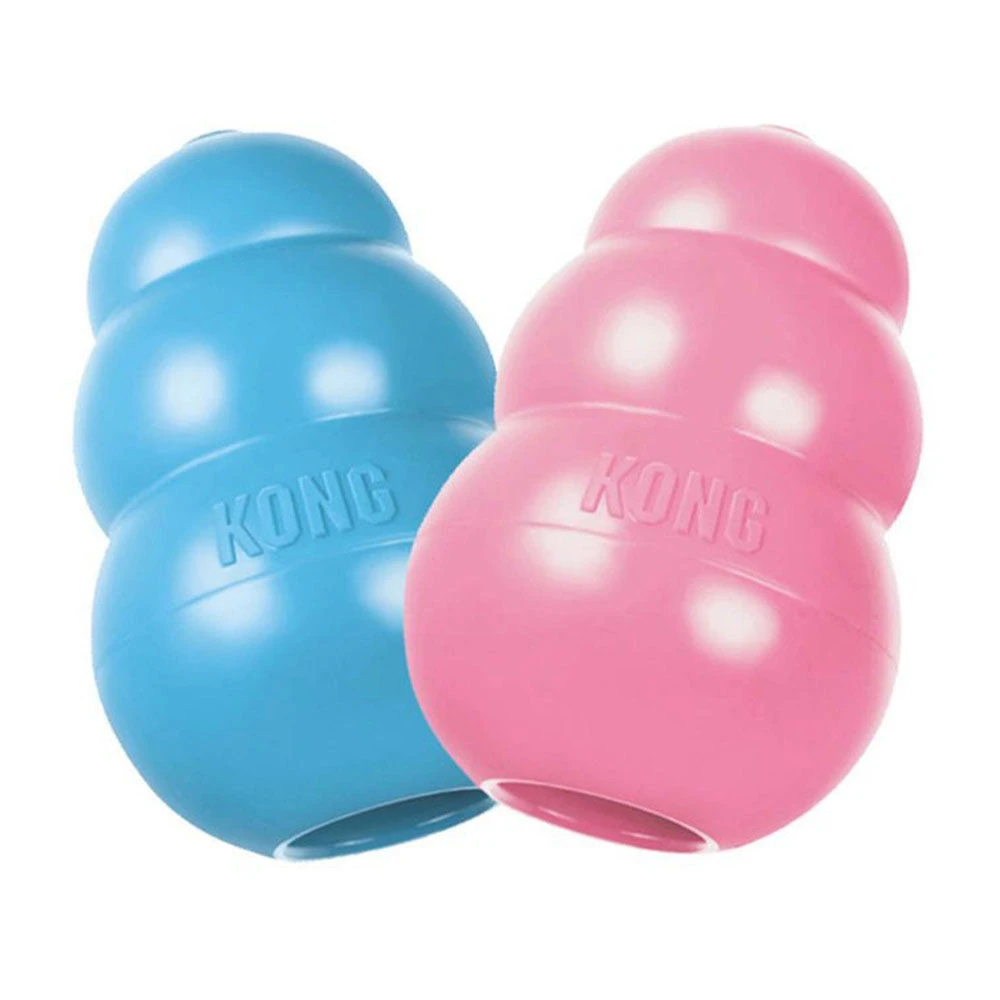 The Puppy KONG dog toy is customized for a growing puppy’s baby teeth, the unique, natural rubber formula is the most gentle within the KONG rubber toy line. Designed to meet the needs of a puppy’s 28-baby teeth, it helps teach appropriate chewing behavior while offering enrichment and satisfying a younger pup’s instinctual needs while the erratic bounce make it ideal for those pups that just want to play. A stuffed Puppy KONG occupies busy little ones while allowing pet parents the freedom to attend to their unique needs. Want to make crate training easier or extend play time? Be sure to stuff with puppy kibble and a dash of peanut butter. Add to the fun by including KONG Puppy Snacks and top with KONG Puppy Easy Treat.