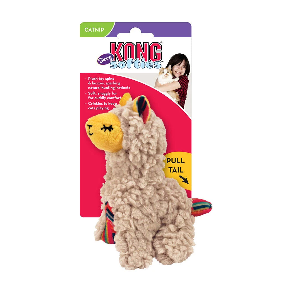 Pull KONG Softies Buzzy Llama’s tail and it spins and hums. Creating movement that sparks your cat’s natural hunting instincts. Crinkle sounds and KONG Premium North American Catnip extend engagement while irresistibly soft fur calls for cuddles.