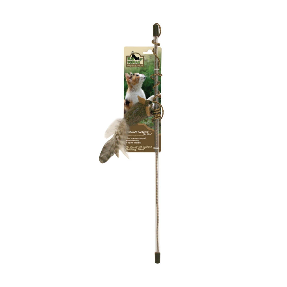 The OurPets® Tethered & FeatheredTM play wand is designed to provide your cat with instinct fulfilling play by appealing to your cat’s senses with the original RealMouse® sound, lifelike textures and looks, and a stimulating catnip scent. Dangle this wand in front of your cat to see them engage in the physical exercise they need as natural hunters.