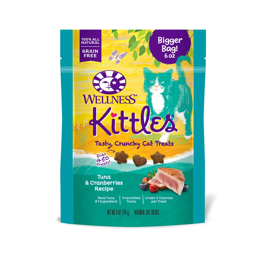 Indulge your cat with Wellness® Kittles™ natural, grain-free crunchy cat treats. At only 2 calories per treat, Kittles are the purrfect way to show your kitty love. With 6 flavors to choose from, these crunchy bites are not only delicious, but help clean teeth too!.
